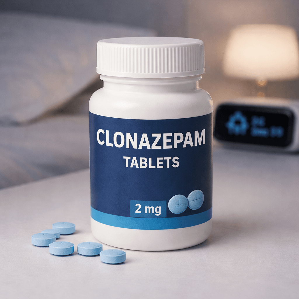 Clonazepam (Klonopin) 2mg is a high-potency benzodiazepine prescribed for the acute management of panic disorder (with or without agoraphobia) and to control specific seizure disorders (epilepsy, Lennox-Gastaut syndrome, myoclonic, and absence seizures)